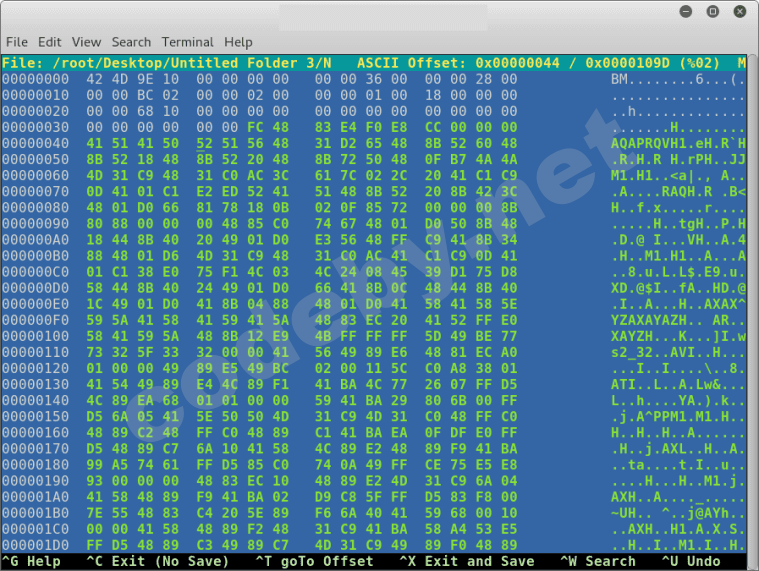 Шаг3*Понеслась*: теперь мы будем заносить наш пейлоад созданный в пункте 2 в BMP файл созданный в пункте 1, делать это можно используя hexeditor в Kali или же "Hexeditor NEO" в винде.