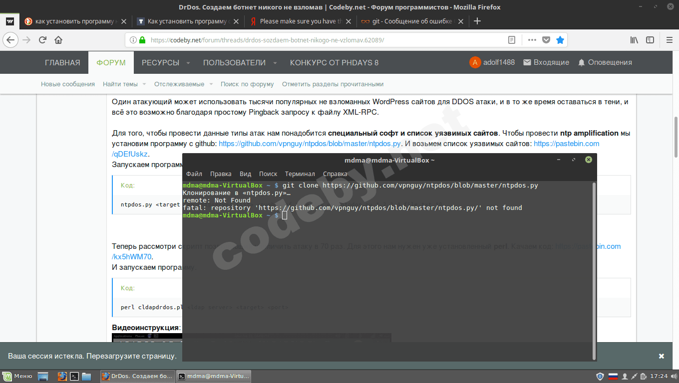 Для того, чтобы провести данные типы атак нам понадобится специальный софт и список уязвимых сайтов. Чтобы провести ntp amplification мы установим программу с github: https://github.com/vpnguy/ntpdos/blob/master/ntpdos.py. И возьмем список уязвимых сайтов: https://pastebin.com/qDEfUskz.
