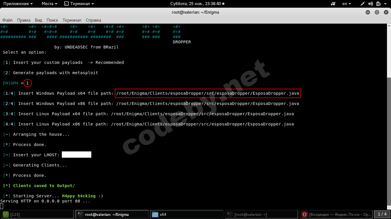 Enigma - генератор пейлоадов (полезной нагрузки) под винду и Линукс. Работает в связке с Метасплойтом.