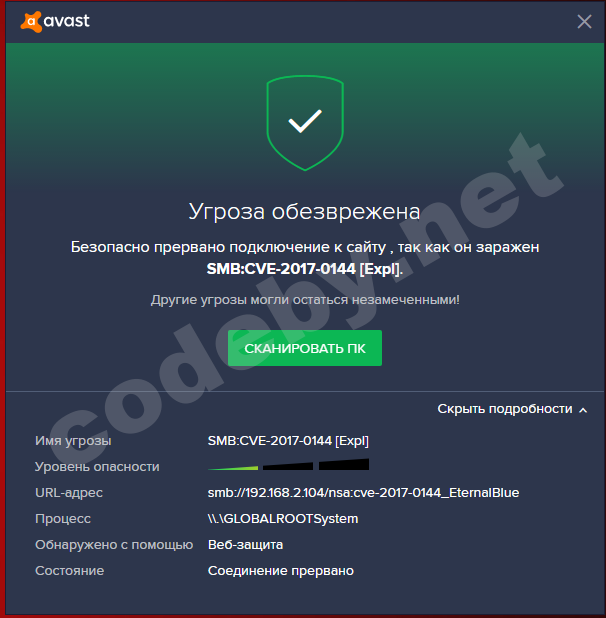 IPS блокирует данный эксплойт еще до работы антивирусного движка.