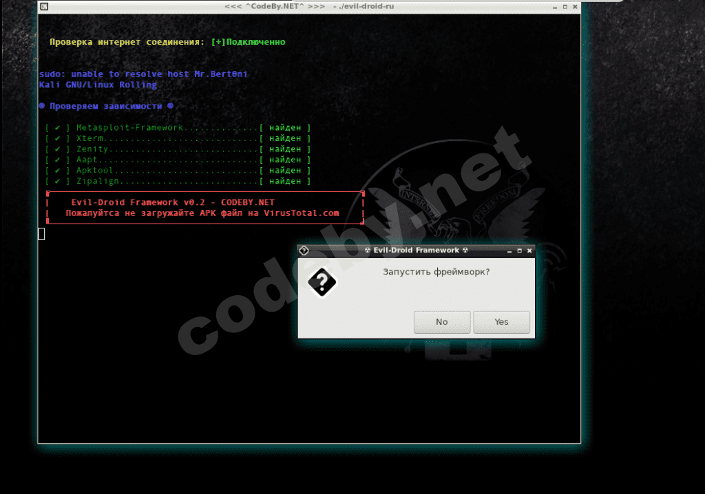 И так , речь пойдет сегодня а так званом Evil-Droid, который написан на языке BASH и любой смертный сможет заглянуть в исходник скрипта.На момент написания этой статьи скрипту было 6-дней, и посему я не могу гарантировать что через полгода антивирусник не будет палить АПК-файлы созданые с его помощью.