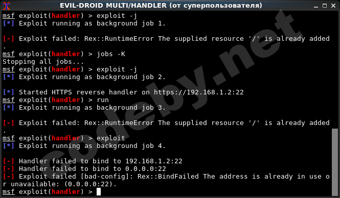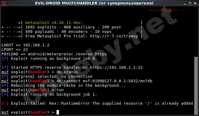 После генерации апк файла предлагает поднять листенер метасплоита, я соглашаюсь ( это удобно ) :
