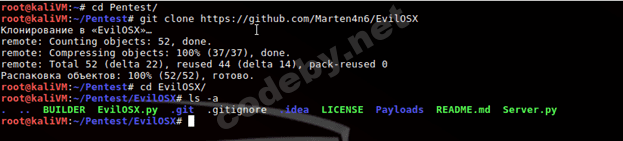 · Автоустановка, просто запустите EvilOSX на целевом хосте, а остальное - автоматически.