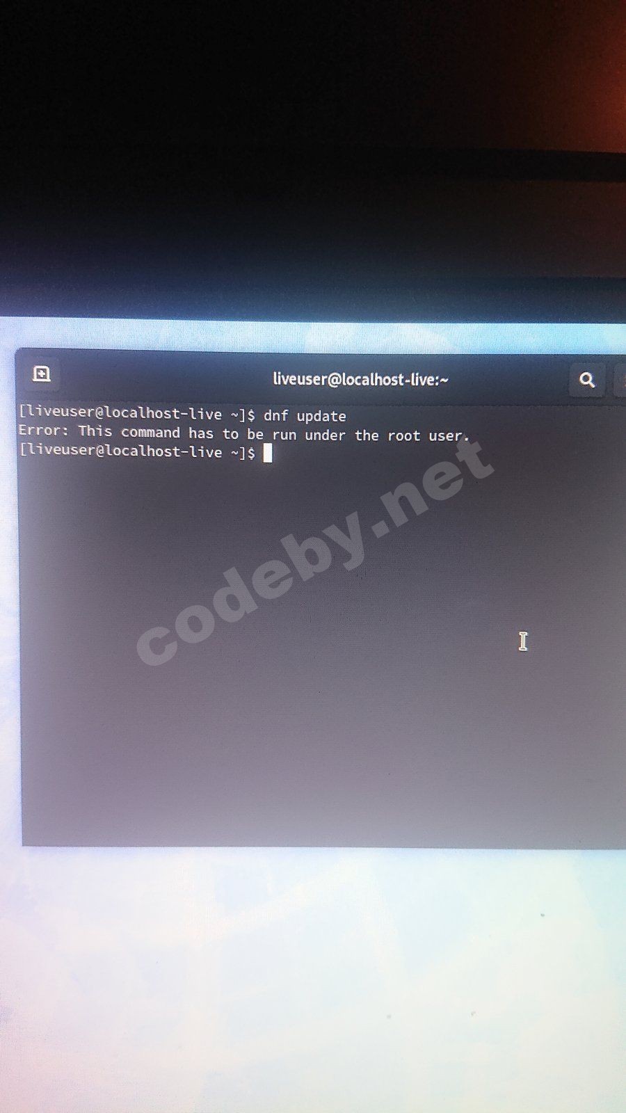 Ребят помогите советом. Установил Fedora31 live и не могу установить обновления пишет нет root прав. В чём ошибка?