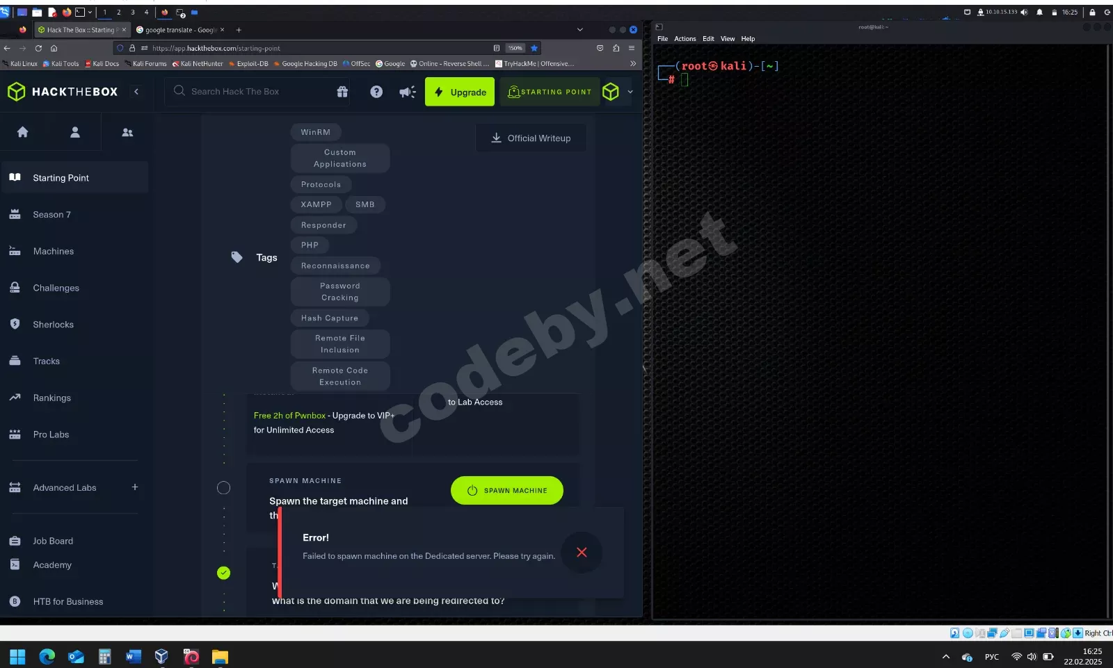 всем привет,такая проблема,машина на hackthebox не запускается,до сих пор все было нормалино,vpn есть...интернет есть...в чем можыти быть проблема?зарания спасибо!