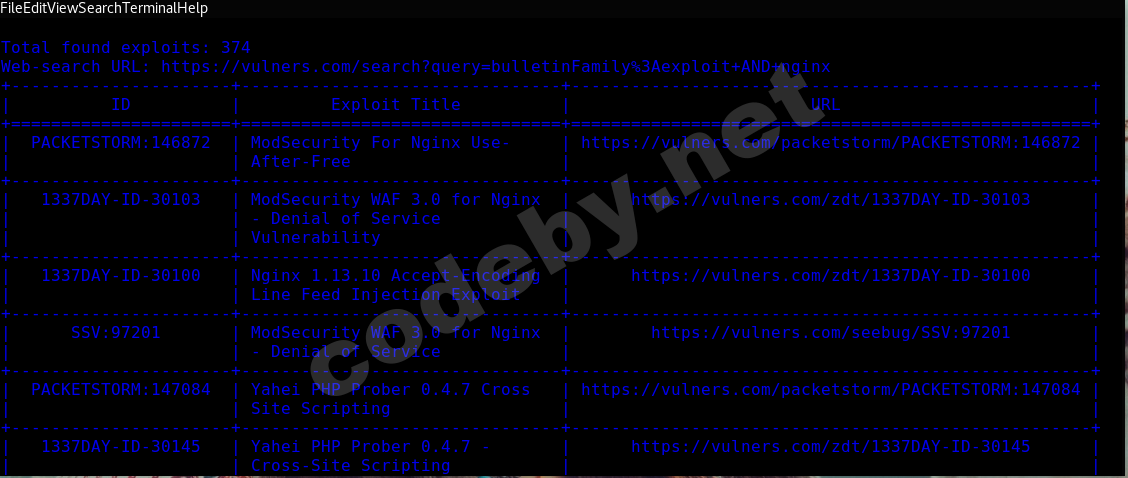 И тут же он нам может достать эксплойты под тот же nginx