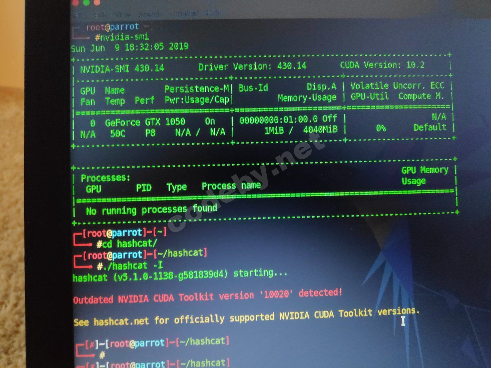 Мне надо чтобы hashcat работал с моей видеокартой в parrot os security.