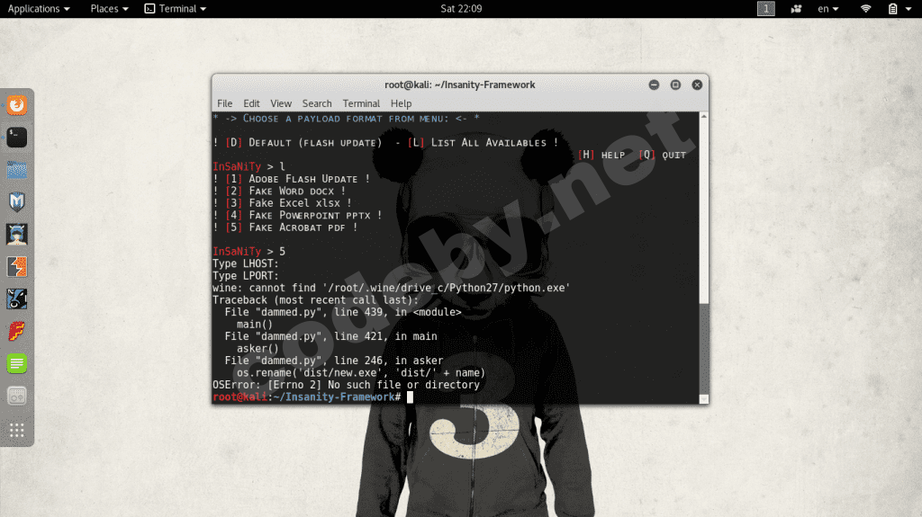 Итак, Insanity Framework – это фреймворк, который, значительно облегчает создание полезной нагрузки, ее маскировку и запуск на атакуемом хосте. Значительный плюс, это возможность обхода большинства антивирусных решений.