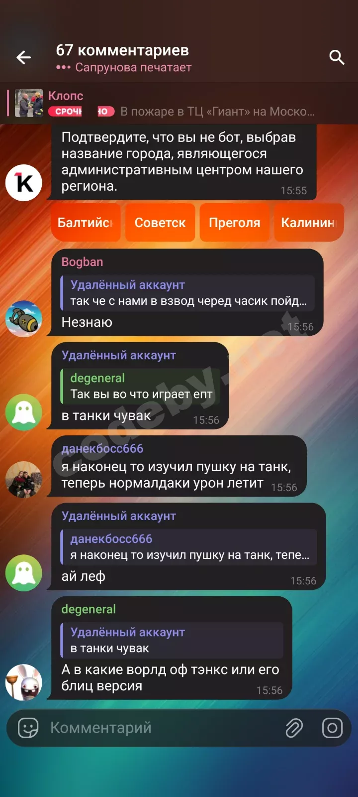 В телеге на канале "Клопс" жители обсуждают происшествие.