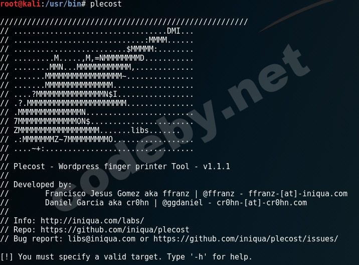 plecost по умолчанию установлен в kali, но почему-то совсем не обновляется и имеет версию аж 0.2.2-9-beta.