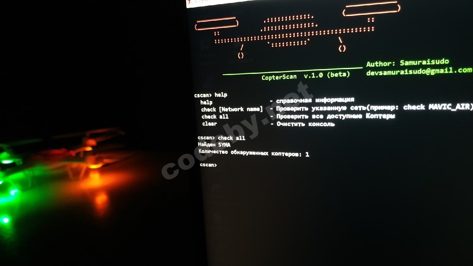 CS успешно обнаружил коптер и вывел нам название производителя. Далее дело рук смартфона.