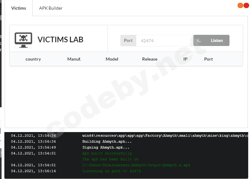 Пытаюсь заразить виртуалку AhMyth Rat. Билд делается, билд на виртуалке запускается, а в самом AhMyth устройство не появляется...
