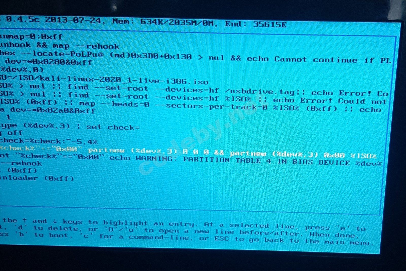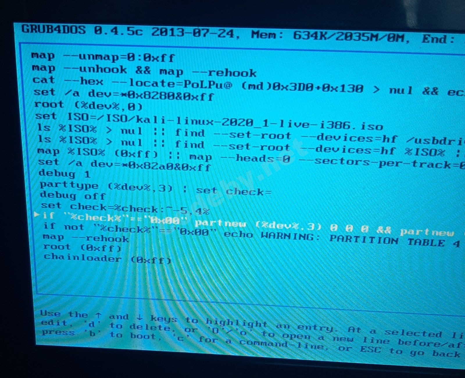 Нажмите 'e', откроется новое окно. Найдите строку, которая начинается на