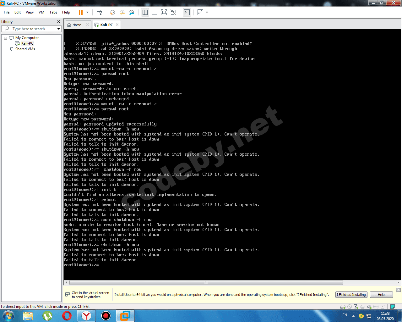 Если забыл пароль от Kali Linux