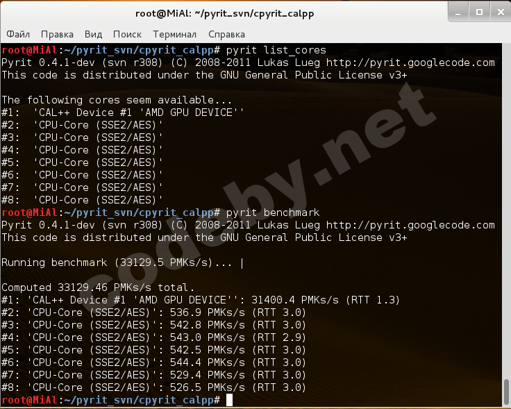 Спасибо за Ваши инструкции WebWare Team. После этого накатил ещё oclHashcat.