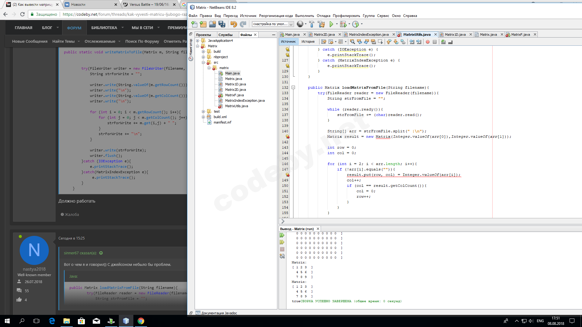 Проблема Как вывести матрицу любого размера в текстовом файле?