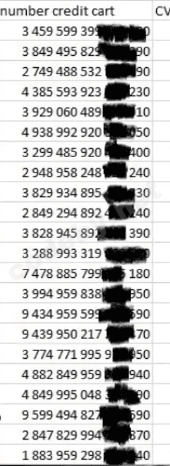 В таблице, что они показывают, есть столбец Е под названием number credit cart