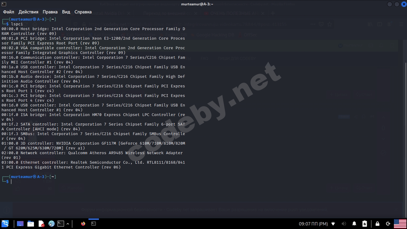 Kali linux. В процеесе установки драйверов для видеокарты понял, что Linux не видит ее и замещает процем. У меня ноут, видеокарта (интегрированная) nvidia. Что делать?