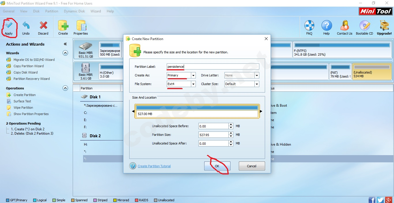 Выбираем параметры как в картинке жмем OK потом Apply. Ждем…
