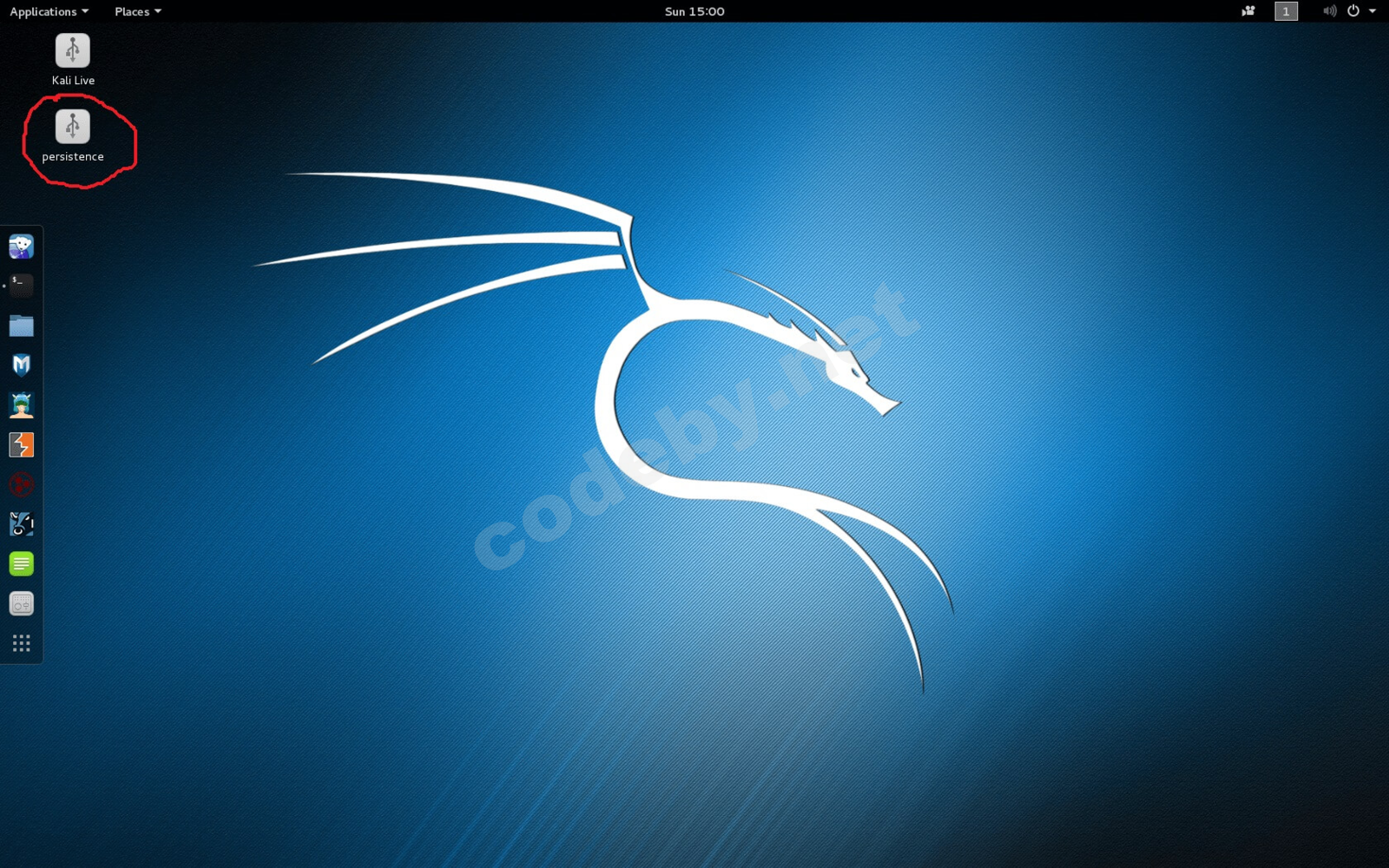 После того как Kali загрузился вы должны увидеть на рабочем столе папку с флешки persistence.