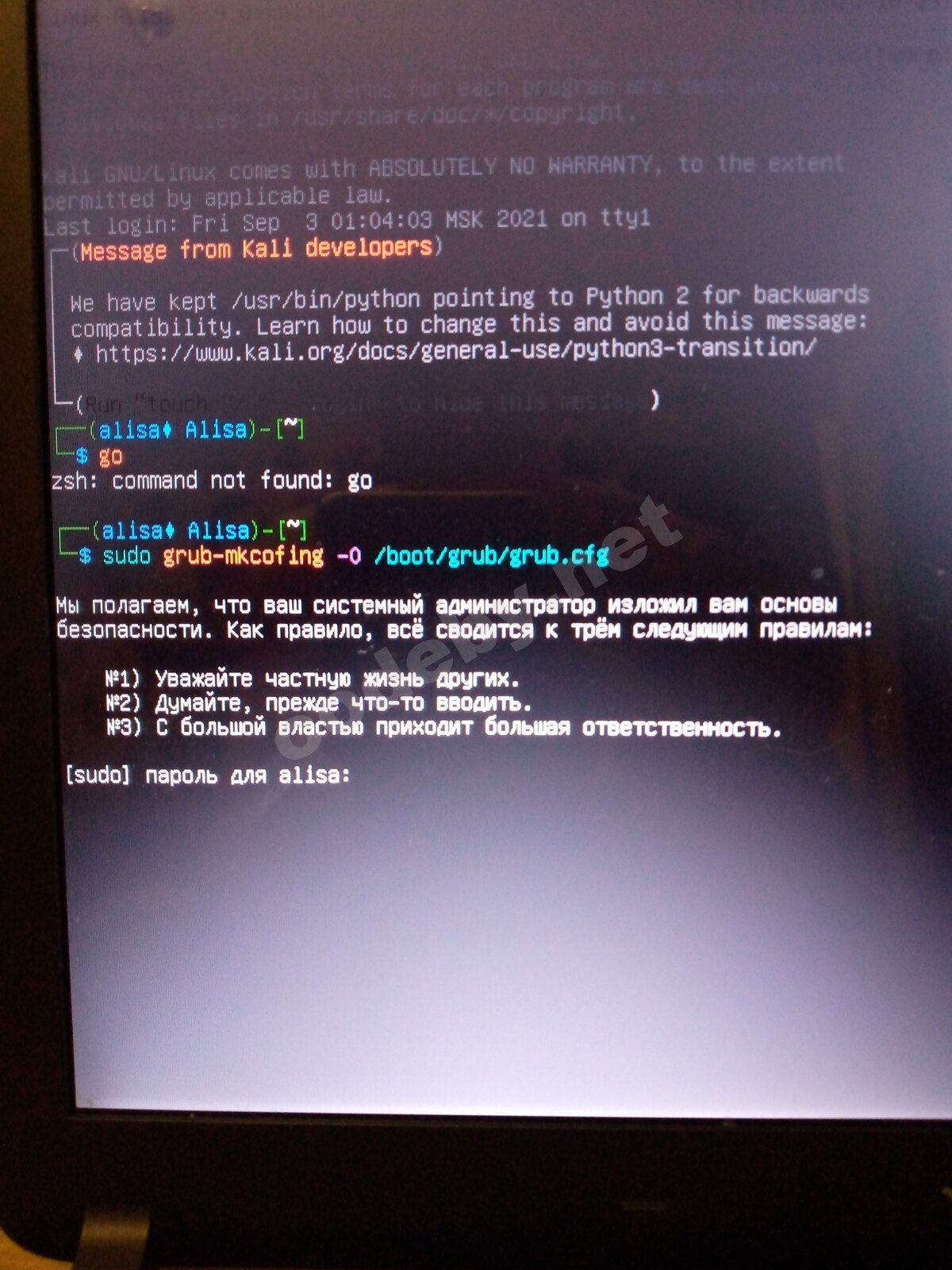 Почему вы не читайте ошибку ?Помогите пожалуйста, как можно это исправить, установила кали, он выдает вот это?