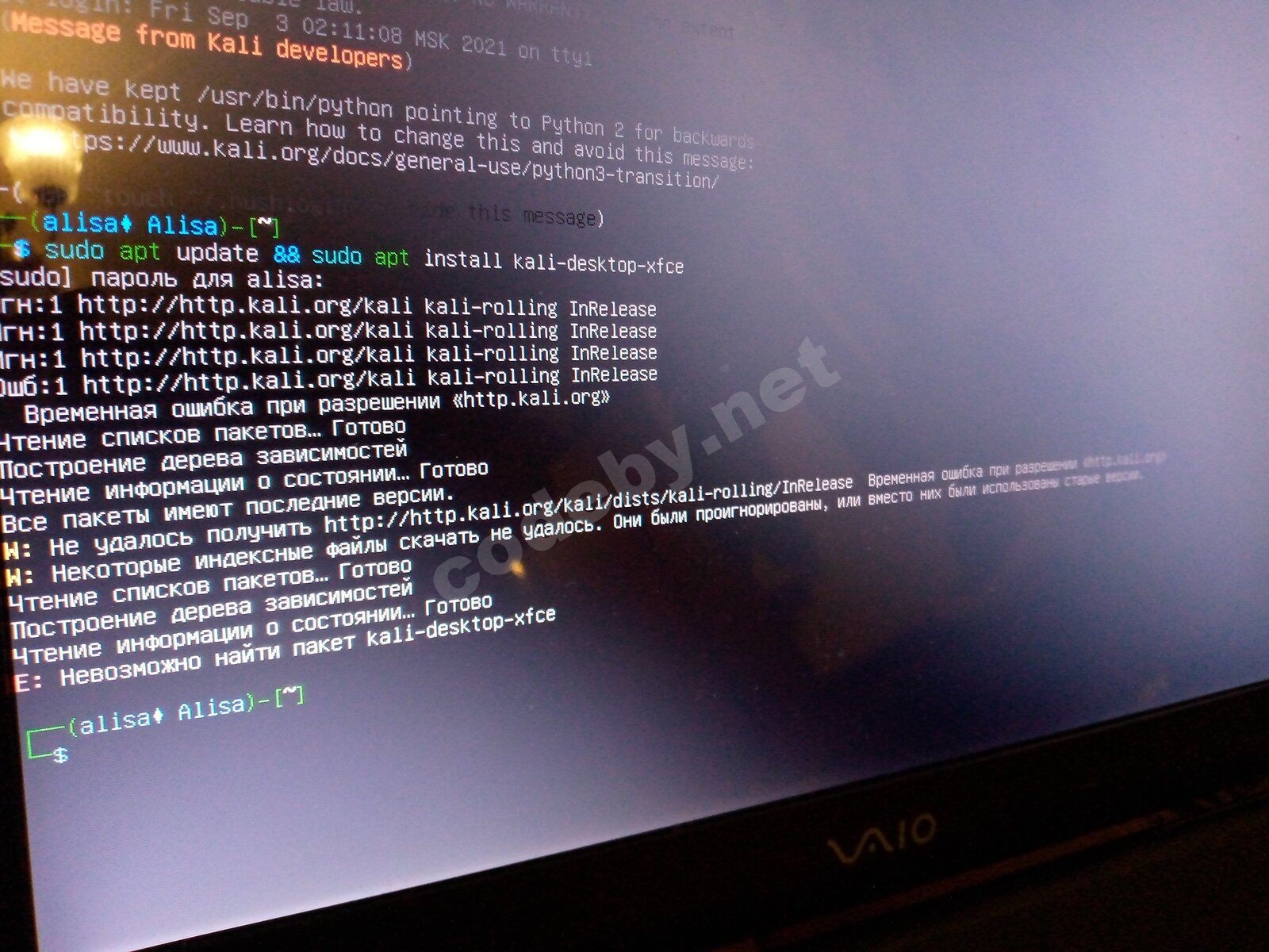apt install kali-desktop xfceЕ: Невозможно найти пакет ....