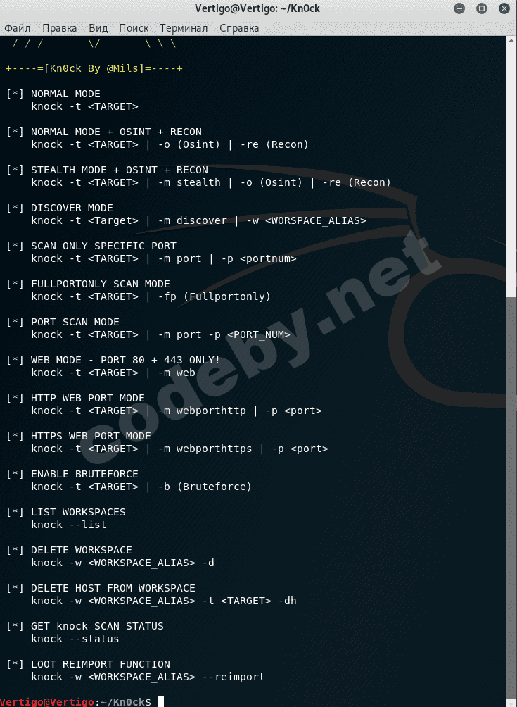# ./knock --help -команда запуска с выводом справки