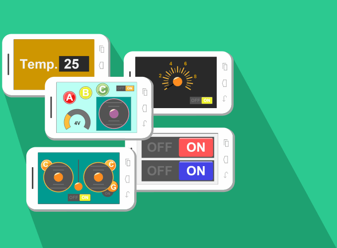 RemoteXY немного отличается от других инструментов с графическим интерфейсом для Arduino, с которыми мы знакомы. Вы можете добавить различные устройства ввода, такие как кнопки, джойстики, переключатели прямо из списка на экран в зависимости от вашего проекта. Проектирование может быть сделано очень легко с помощью визуального редактора RemoteXY.