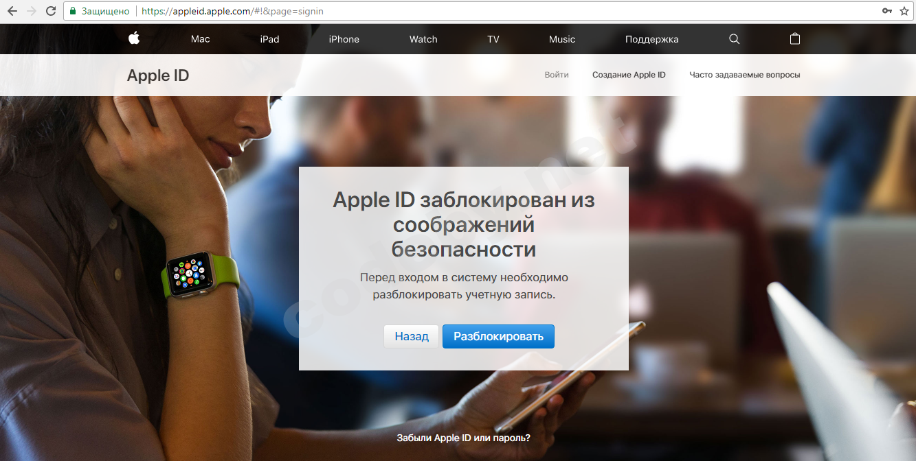 Apple ID заблокирован из соображений безопасности