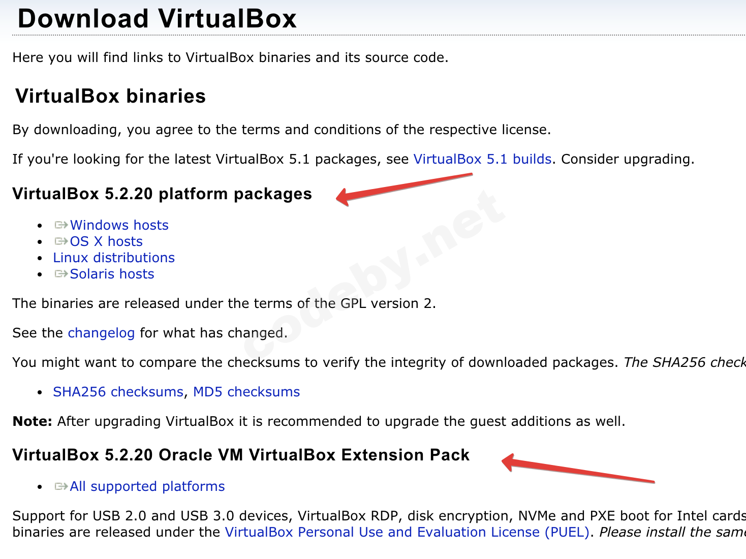 Заходим на сайт VirtualBox и скачиваем VB под вашу операционную систему. Также, не забываем скачать VM VirtualBox Extension Pack.