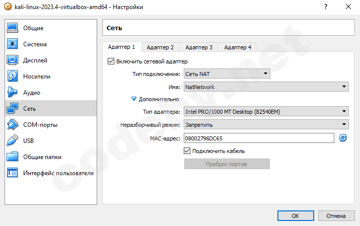 Здравствуйте! Установил Kali Linux в VirtualBox. Но из системы нет доступа к сети Интернет. В настройках VirtualBox создал NAT сеть, в настройках сети для Kali Linux задал параметры, представленные в скриштоте. После загрузки Kali Linux нет подключения к сети Интернет. Уважаемые эксперты, что необходимо предпринять для решения проблемы?