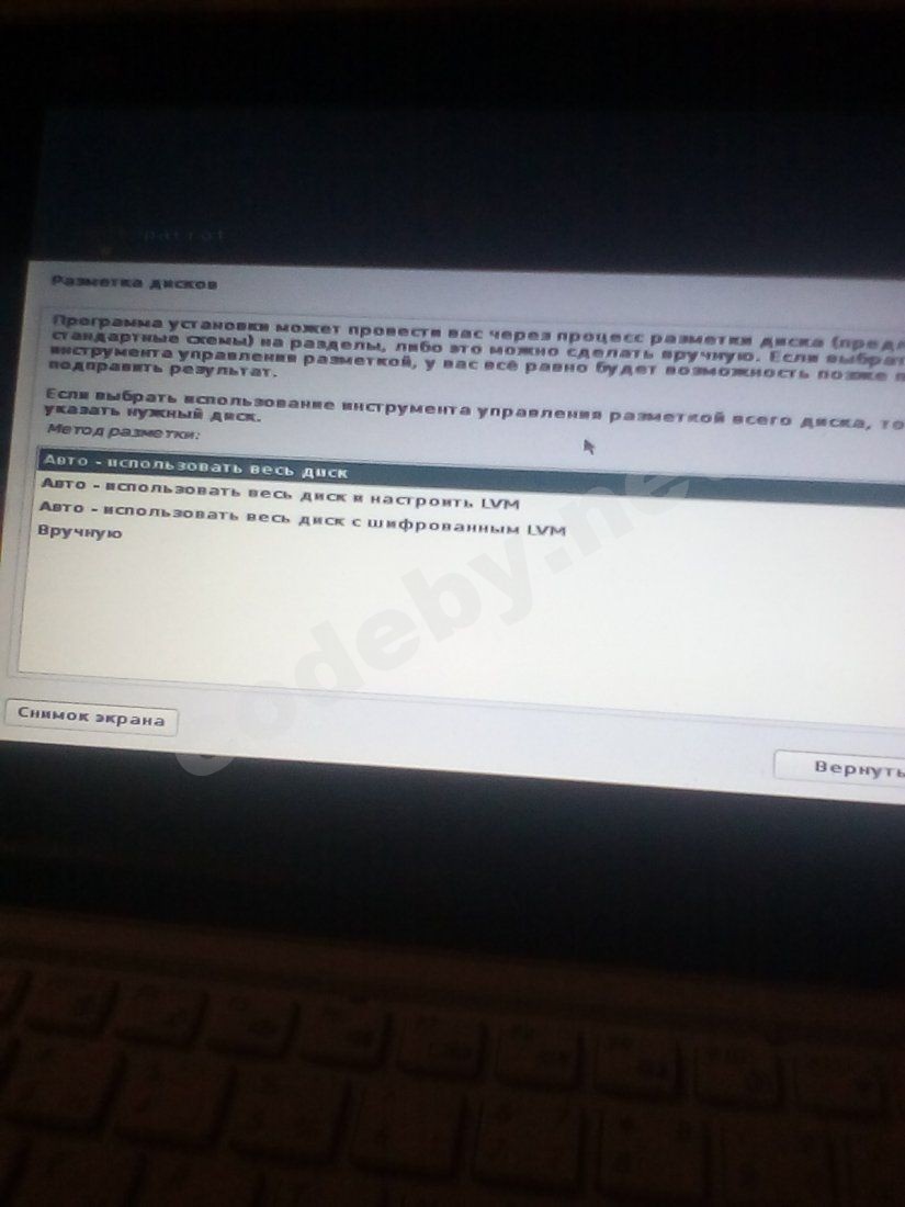 Все время выдает одну и туже ошибку перепробовал все и авто и с lvm и в ручную не фига не устанавливает