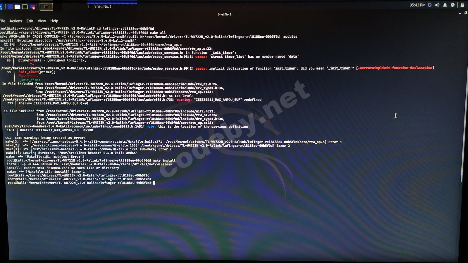 Добрый день, столкнулся с проблемой при попытке вывести в режим Монитора внешний wi-fi адаптер Tp-Link TL-WN722N v2. Почитал про то, что вторая версия не имеет возможности перейти в режим монитора, уже было расстроился, но нашел гайд как все же это сделать ( TP Link TL-WN722N monitor mode IS WORK! ) и на второй версии. Делал все по порядку, но выдает ошибку. Прошу помочь тем, кто сталкивался с подобным или знает как решить.