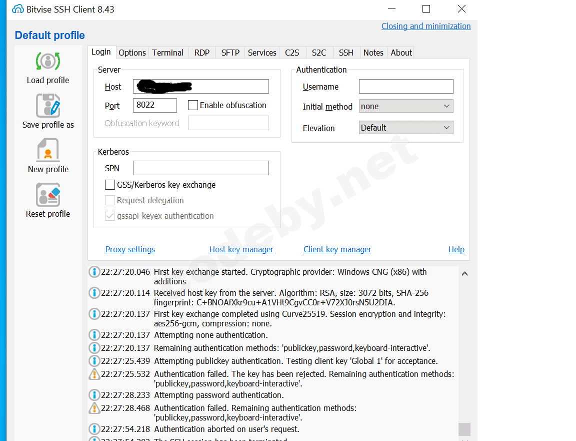 Делаю все как написано на сайте но после того как нажымаю лог ин впроцессе подключения появляется окно, в котором выбираю Method – publickey после чего все должно роботать , но у меня появляется ище одно окно там только такие методы , скрины ниже , надеюсь вполне детально описал проблему .