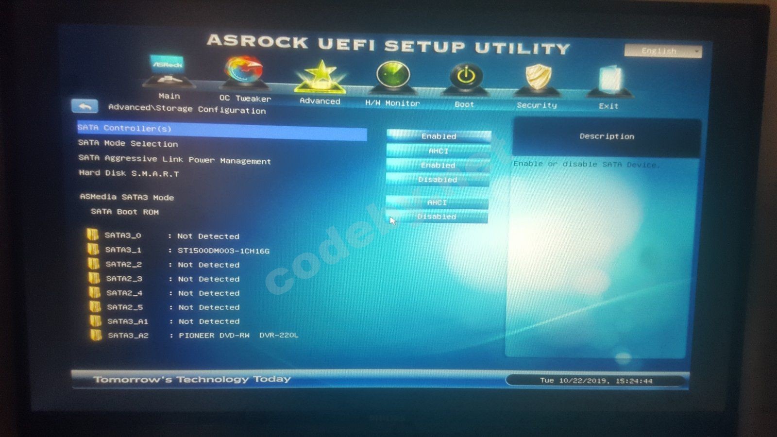 - Предоставь фотографии своего БИОС. Нужна фотка страницы с настройками BOOT , а также страницы с настройкой режимов ACHI или SATA ))