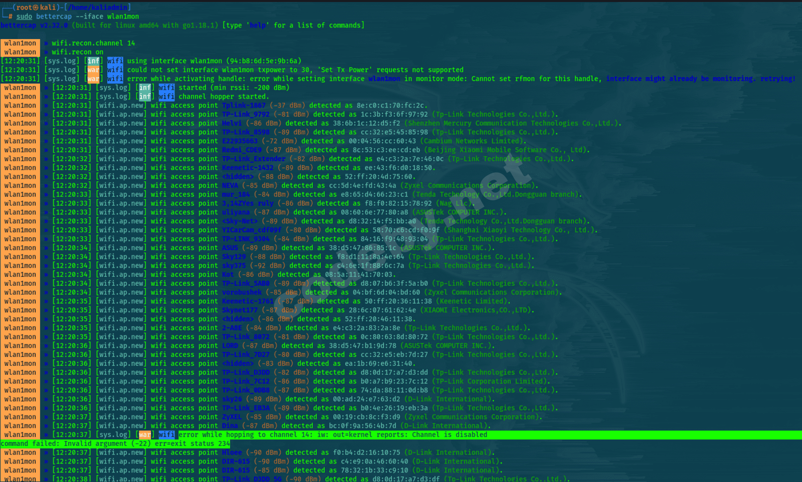 └─# ifconfig wlan0 down && iw reg set JP && ifconfig wlan0 up