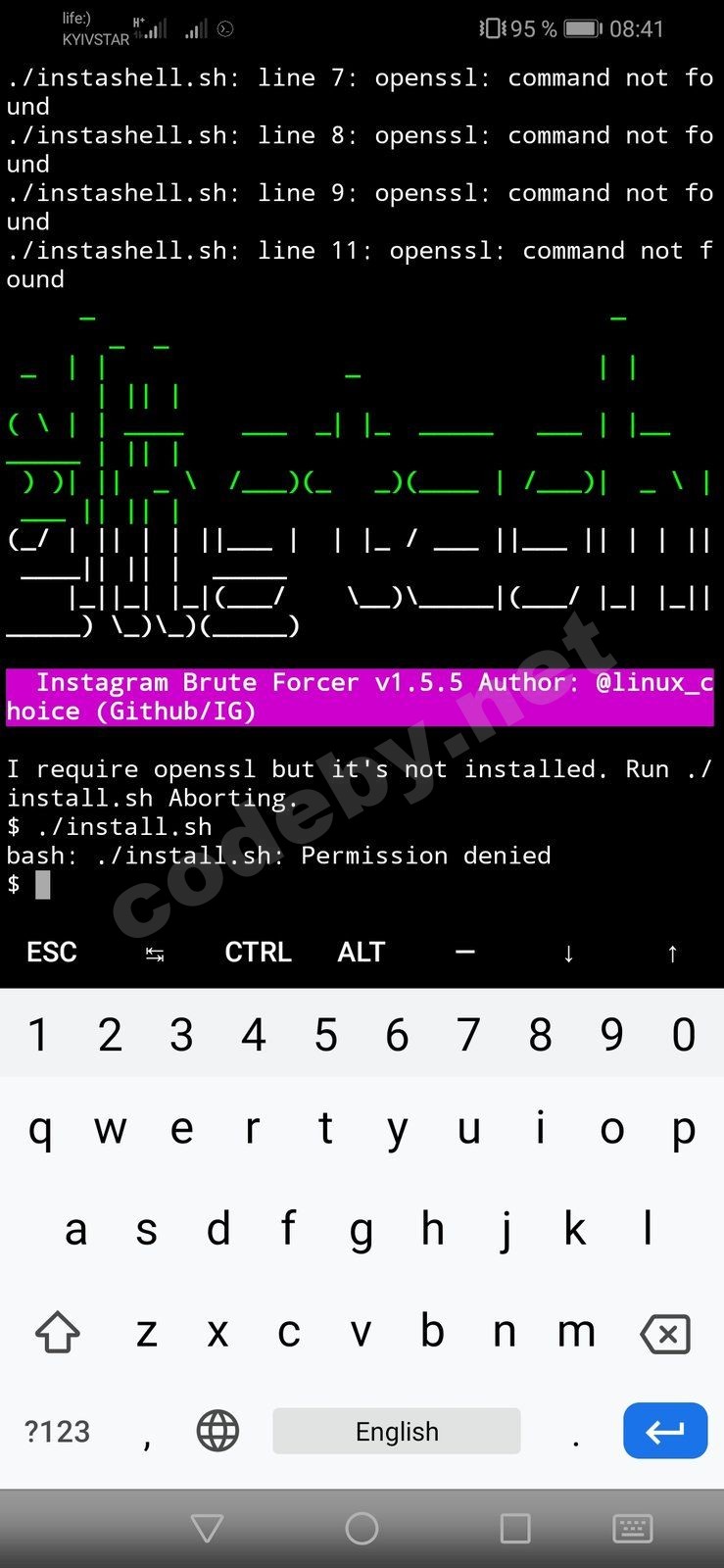Доброго времени суток. Не запускается instashell. Выдает: "I require openssl but it's not installed. Run ./install.sh Aborting." Как исправить? Жду ваших советов.
