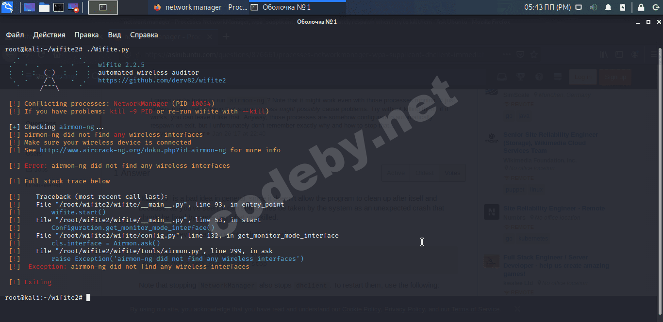 А у меня есть ситевая карта wi-fi встроеная уже в ноут и я ввожу wifite без нечего и серовно это дичь вылезает