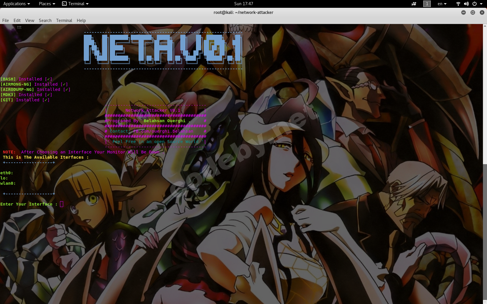 Network-attacker (V0.1) - это скрипт Bash для пентеста/вардрайвинга Wifi.