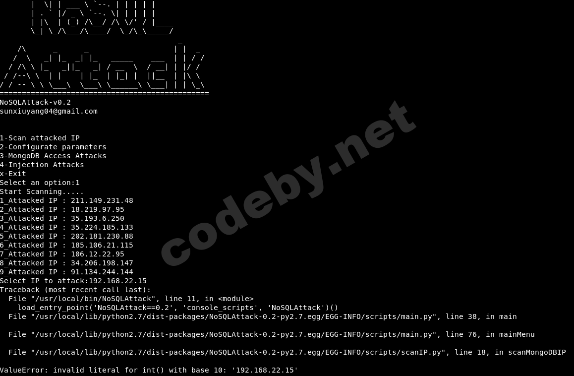 Использовать NoSQLAttack для проверки MongoDB на уязвимость при запуске получаю такую картину: