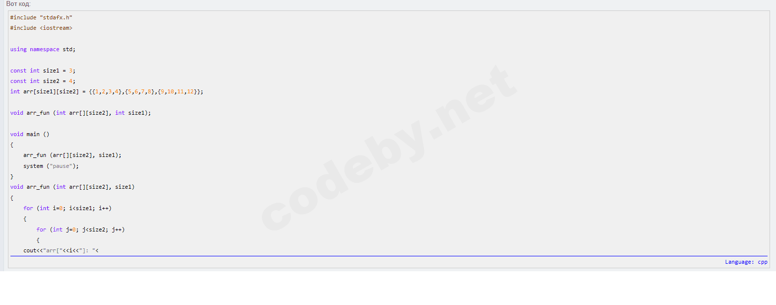 void arr_fun (int arr[][size2], int size1);