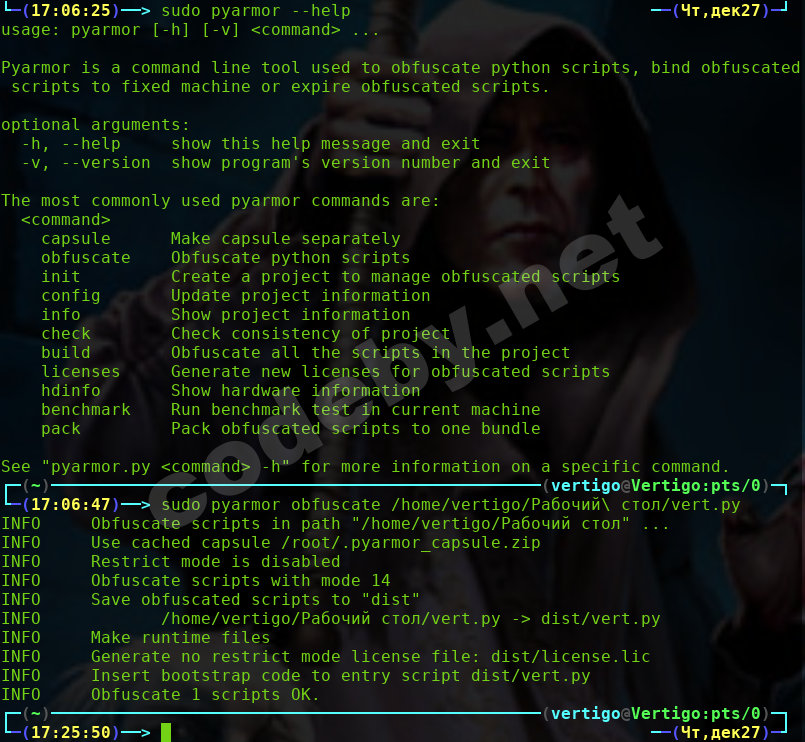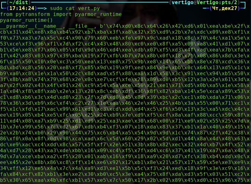 Следующий обфускатор действительно порадовал.Это Pyarmor.