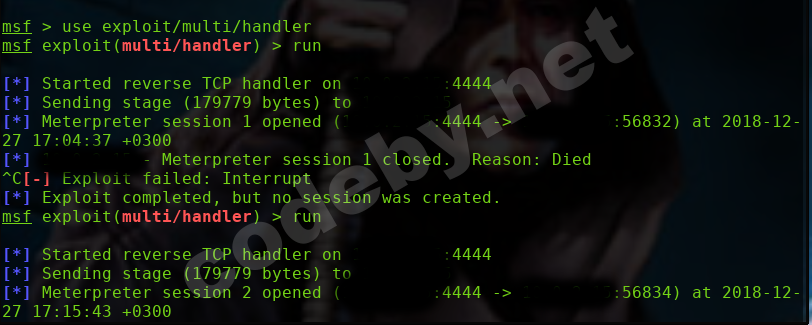 На скрине одна сессия получена от необработанного ещё payload vert.py и 2 сессии после обработки.