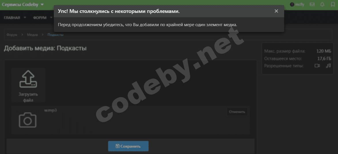 Здравствуйте!Добрый день! Исправьте пожалуйста размер файла 89 mb mp3 не загружает в подкасты ошибка?