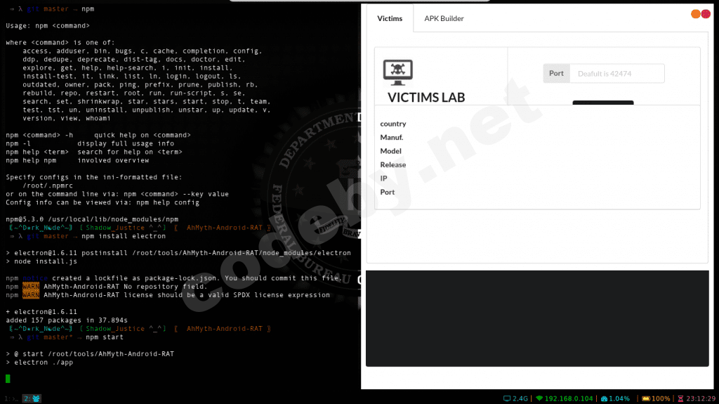 > @ start /root/AhMyth-Android-RAT/AhMyth-Server
