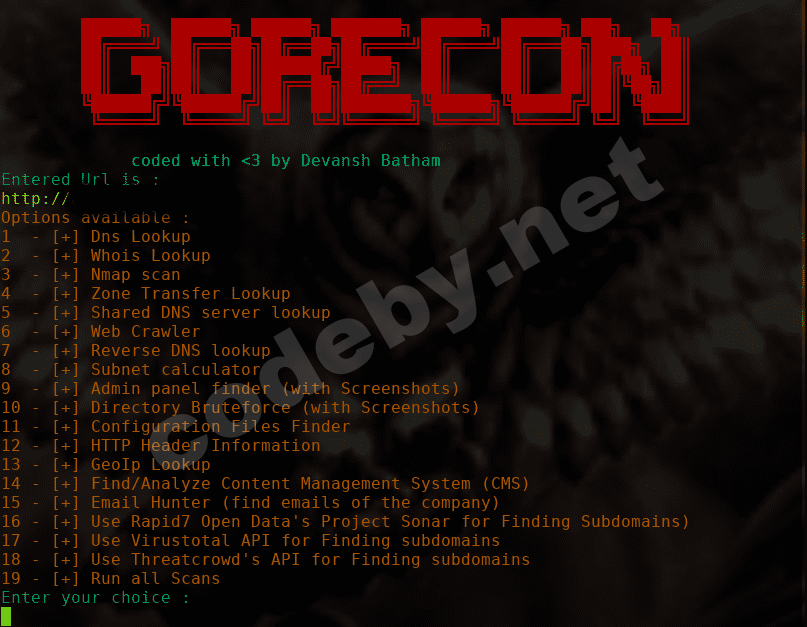 Инструмент предназначен для максимально возможного сбора информации о цели.