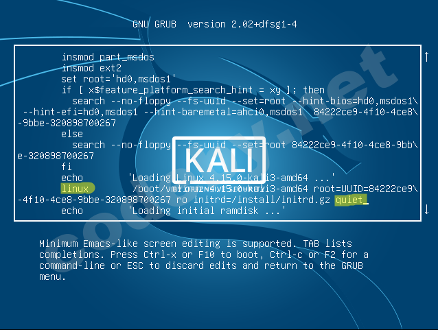 если все заработает и кали загрузится можешь изменить конфиг файл grub'a