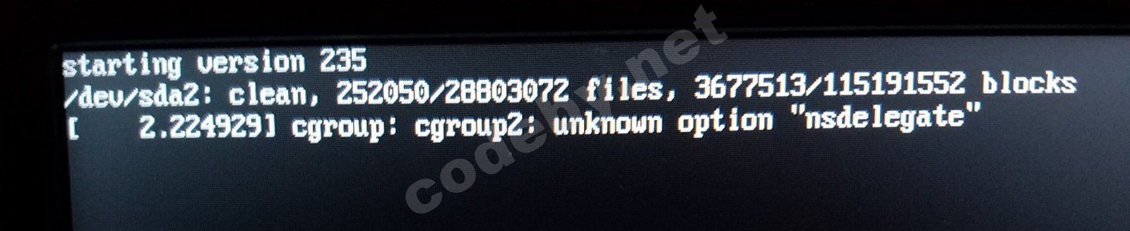 После той самой перезагрузки моим очам предстала надпись: cgroup: cgroup2 unknown option "nsdelegate". Ничего более не происходило.