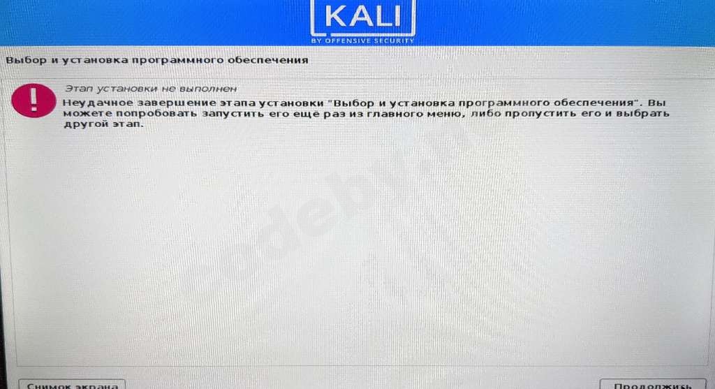 Решил установить Кали Линукс свежую версию 21 года и в процессе установки требовалось установить дополнительные драйверы ( фото прикрепил ). Вроде все получилось нормально и процесс установки дошел до скачивания программ и графической оболочки и тут сразу после этого выскочила ошибка. Неделю ломаю голову, самостоятельно не получается исправить, одним словом нуб. Как решить эту "проблему" ?